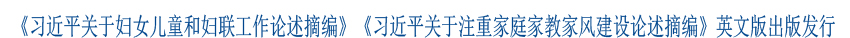 中共中央党史和文献研究院翻译的《习近平关于妇女儿童和妇联工作论述摘编》《习近平关于注重家庭家教家风建设论述摘编》...【详情】【更多头条】